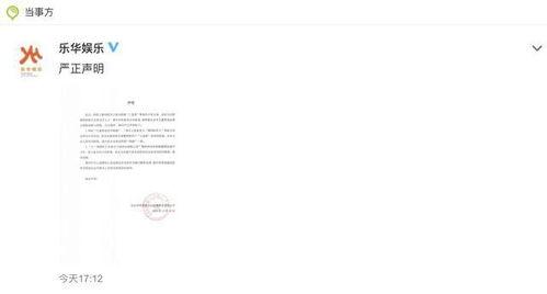 话说有一天,某知名博主在微博上爆料,称乐华娱乐旗下艺人某位明星涉嫌出轨。这个消息一出,瞬间引起了网友们的广泛关注。大家纷纷猜测这位明星的身份,同时也对乐华娱乐的回应表示期待。